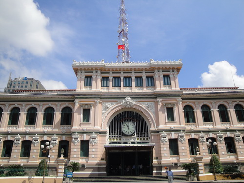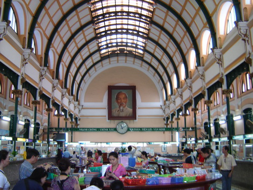 ไปรษณีย์กลางโฮจิมินห์ (Central Post Office) ไปรษณีย์ที่ใหญ่ที่สุดในเวียดนามตั้งอยู่ใจกลางเมืองโฮจิมินห์ ใกล้ๆกับโบสถ์โนธตราดาม, โบสถ์หลักของเมือง ไปรษณีย์แห่งนี้สร้างขึ้นเมื่อครั้งที่เวียดนามยังอยู่ในการปกครองของฝรั่งเศสช่วงต้นศตวรรษที่ 20
