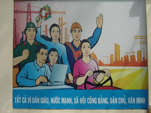 จากรูปนี้ ผมขอตีความหมายเองก็ คือ ความรักของเราจะทันสมัย (เหมือนเพลงชองตินา) คือ หญิงชาวเท่าเทียมกัน หญิงสามารถทำงานแทนชายได้ โดยดูจากการที่หญิงสาวขับรถ และ ประเทศเวียดนามจะพัฒนาได้ด้วยเทคโนโลยี โดยดูจากภาพชายหนุ่มใช้คอมพิวเตอร์ และประชาชนทหารราชการจะร่วมมือกันในการพัฒนาประเทศ และ สุดท้ายคือ ในปี ค.ศ.2015 ประเทศเวียดนามจะมีความเจริญเท่าเทียมกับประเทศไทย และ ในปี ค.ศ.2020 ประเทศเวียดนามจะแซงไทย โดยดูจากภาพ มี "เครน" จำนวนมากมาย และ จากการอ่านจากข่าวเมื่อหลายสัปดาห์ก่อน