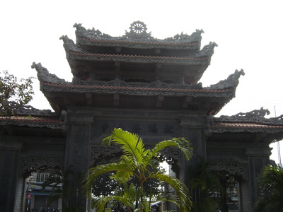 ประตูมีลักษณะคล้ายแบบจีน แต่เบื้องบนมี "ธรรมจักร" แห่ง พระพุทธศาสนา เห็นแล้วเป็นปลื้มมากๆครับ