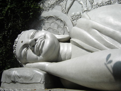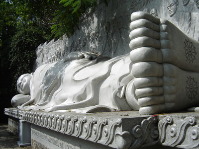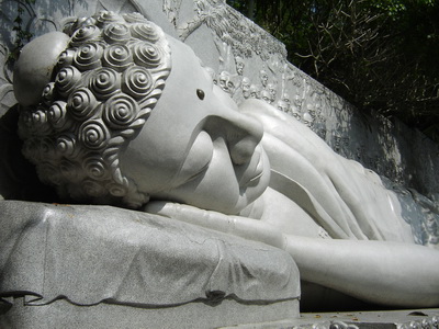 พระพุทธไสยาสน์หินอ่อนขนาดใหญ่ หรือ พระนอน แห่ง Long Son Pagoda หรือ วัดพระพุทธรูปขาว แห่ง เมืองยาตรัง (Nha Trang) เวียดนามกลางตอนใต้