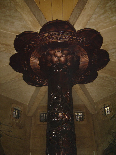 2536. เสาดอกบัว (ทองแดง) อยู่ภายในรัตนบัลลังก์ดอกบัว พระพุทธรูปขาว หรือ พระศรีอริยเมตไตรย แห่ง วัดลองเซิน (Long Son Pagoda) หรือ พระพุทธรูปขาว แห่งเมือง ญาตรัง หรือ ญาจาง หรือ นาตรัง (NHA TRANG) จังหวัด คั้ญฮหว่า (Khánh Hòa) ภาคชายฝั่งตอนกลางใต้ สาธารณรัฐสังคมนิยมเวียดนาม.