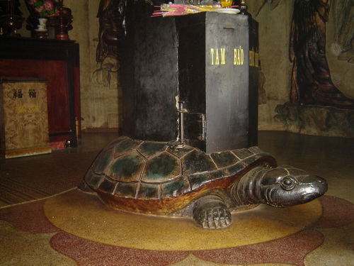 2542. ฐานของเสาดอกบัว คือ เต่า ..... ภายในรัตนบัลลังก์ดอกบัว พระพุทธรูปขาว หรือ พระศรีอริยเมตไตรย แห่ง วัดลองเซิน (Long Son Pagoda) หรือ พระพุทธรูปขาว แห่งเมือง ญาตรัง หรือ ญาจาง หรือ นาตรัง (NHA TRANG) จังหวัด คั้ญฮหว่า (Khánh Hòa) ภาคชายฝั่งตอนกลางใต้ สาธารณรัฐสังคมนิยมเวียดนาม.