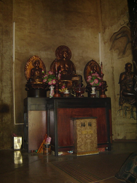 ถ้าเป็นที่สยามประเทศ หลังคาต้องเป็น นาคา แต่ที่นี้เป็น "มังกร" และ มีสัญลักษณ์แห่งพระพุทธศาสนา คือ ธรรมจักร และ พระพุทธเจ้า