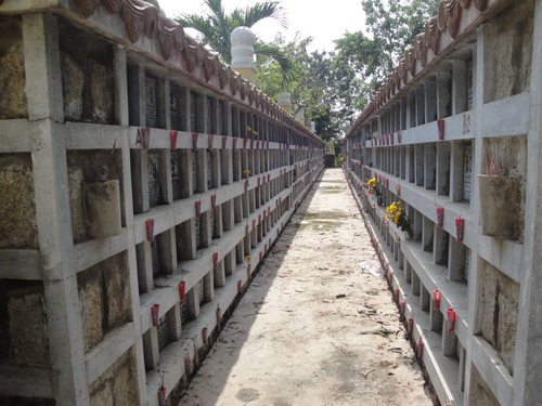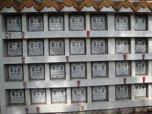 3290. จะเรียกว่า "กำแพงอัฐิ" หรือ "ที่เก็บอัฐิ" บริเวณ Long Son Pagoda หรือ วัดพระพุทธรูปขาว เมืองยาตรัง (Nha Trang) ประเทศเวียดนาม