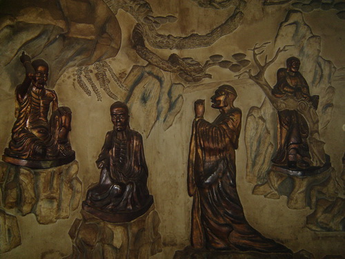 The entrance and roofs are decorated with dragon mosaics which are built from glass and ceramic tiles. The main ceremonial hall is adorned with modern interpretations of classical motifs. The nasal hairs of the dragons are wrapped around the pillars on either side of the main altar.[1]