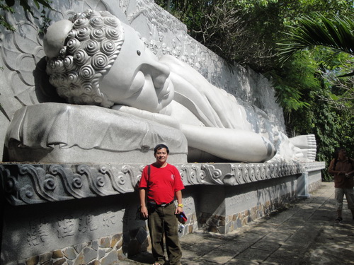 2517.พระพุทธไสยาสน์หินอ่อนขนาดใหญ่ หรือ พระนอน แห่ง วัดลองเซิน (Long Son Pagoda) แห่งเมือง ญาตรัง หรือ ญาจาง หรือ นาตรัง (NHA TRANG) จังหวัด คั้ญฮหว่า (Khánh Hòa) ภาคชายฝั่งตอนกลางใต้ สาธารณรัฐสังคมนิยมเวียดนาม.