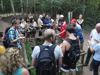 3592. นักท่องเที่ยวที่ได้มาร่วมทริปเดียวกันอุโมงค์กู๋จี ( Củ Chi tunnels) อำเภอกู๋จี (Cu Chi District) นครโฮจิมินห์ (ไซ่ง่อน) สาธารณรัฐสังคมนิยมเวียดนาม.