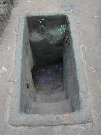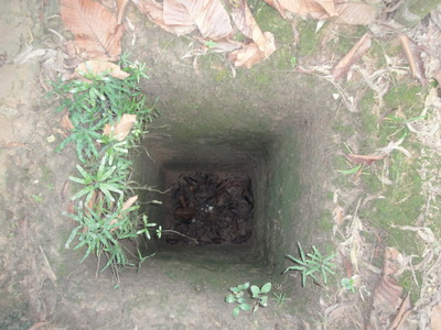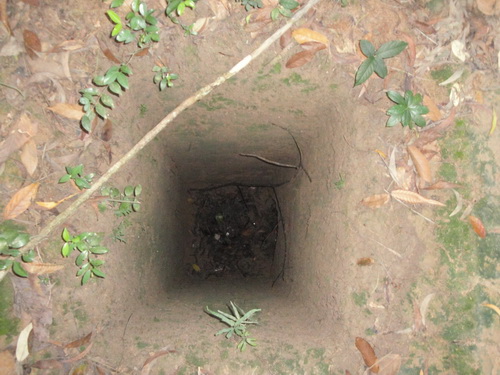3483. ถ้ามองตามรูป จะคำนวณได้ว่า หลุมจะลึกกว่าสะดือเล็กน้อย หรือ ต่ำกว่าหน้าอกอุโมงค์กู๋จี ( Củ Chi tunnels) อำเภอกู๋จี (Cu Chi District) นครโฮจิมินห์ (ไซ่ง่อน) สาธารณรัฐสังคมนิยมเวียดนาม.