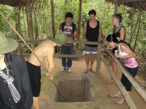 3469. อุโมงค์แห่งเมืองกุจี มีลักษณะลึกเป็นชั้นๆ เพื่อป้องกันการโจมตีจาก ระเบิดนาปาล์ม หรือ ระเบิดจากเครื่องบินรบ B-52