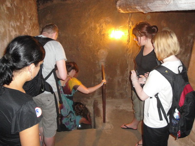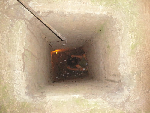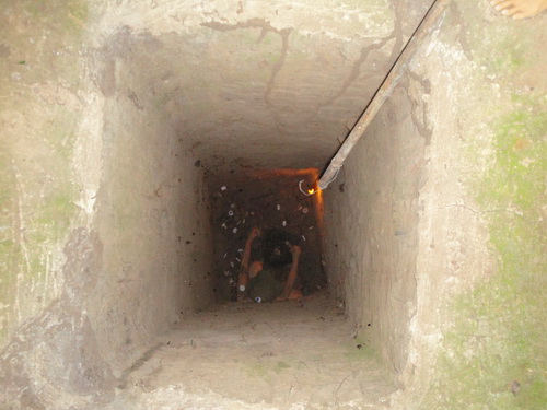 จากอุโมงค์ชั้นที่ 1 ก็มีอุโมงค์ลงไปยังชั้นที่ 2.อุโมงค์กู๋จี ( Củ Chi tunnels) อำเภอกู๋จี (Cu Chi District) นครโฮจิมินห์ (ไซ่ง่อน) สาธารณรัฐสังคมนิยมเวียดนาม.