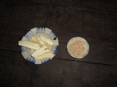 3588. มันสำปะหลังต้นหรือนึ่ง กับ เกลือผสมพริกแห้งป่น